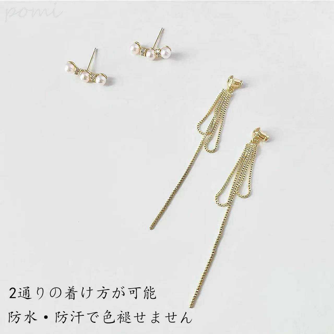 着脱可能なフリンジデザインで、ジルコニアイヤピアス単体でシンプルに着けてもオシャレで、フリンジを組み合わせると動きのあるデザインに変身します。