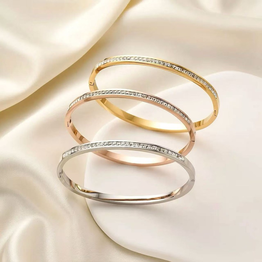 バビースブレスレット(満天星デザイン)・シンプルでクラシックな万能スタイル・マイナーながらも個性的な半ダイヤ風ジルコニア入り合金製