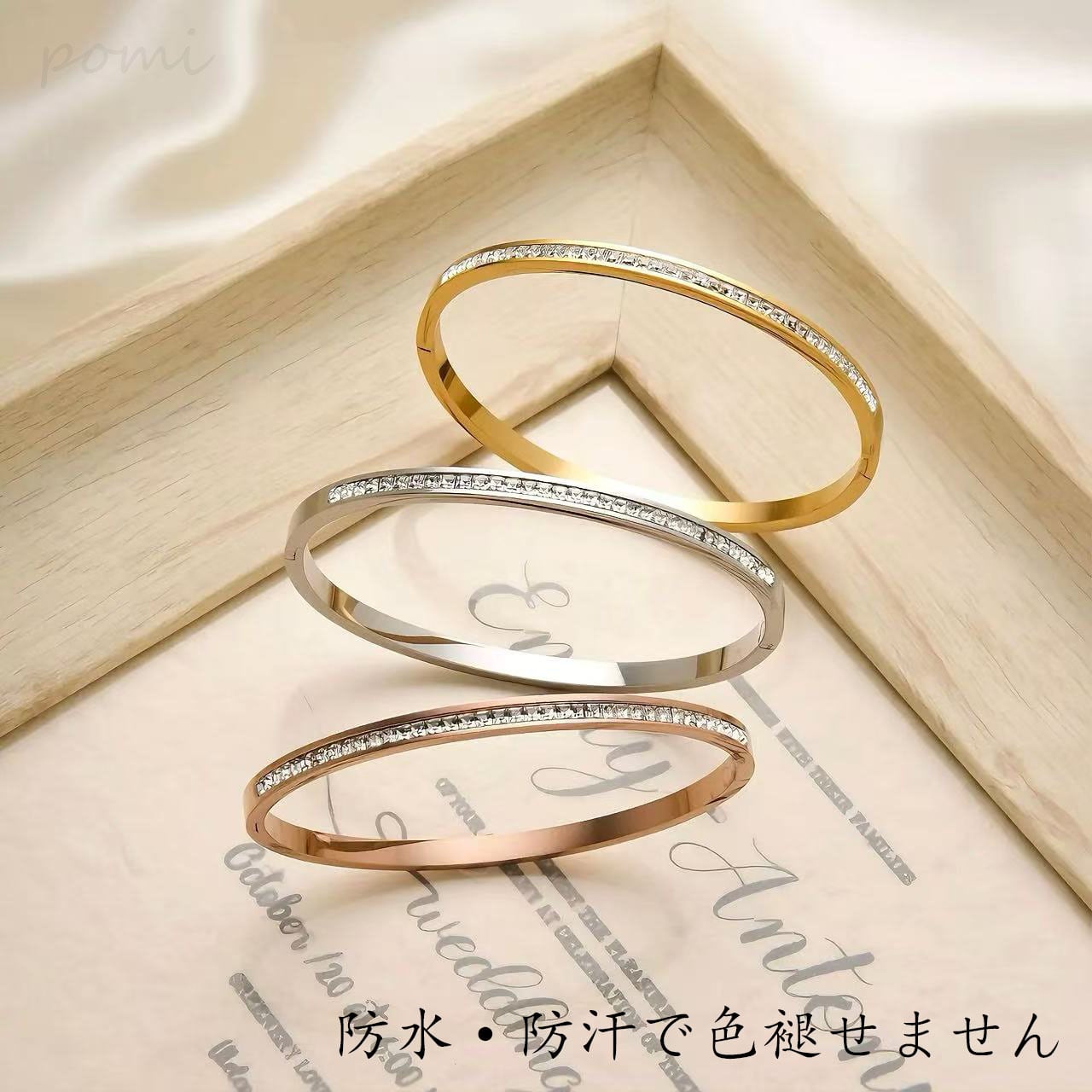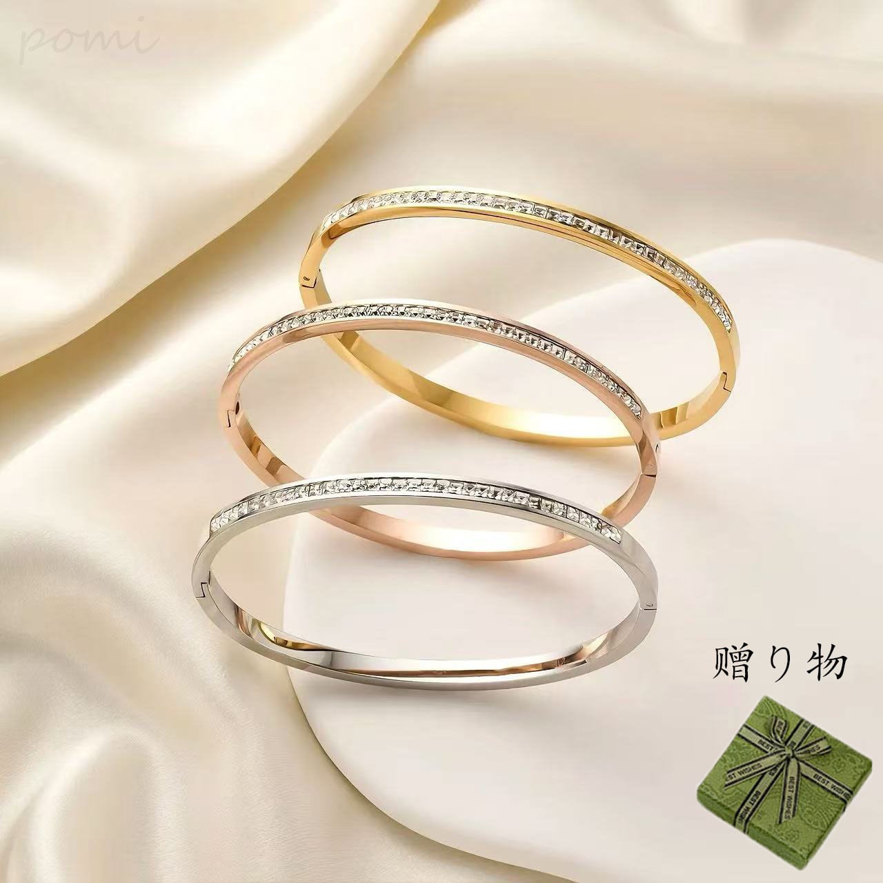 ブレスレットには半周にわたって精巧に嵌め込まれたダイヤモンド風ジルコニアが、夜空に瞬く星のように輝き、ロマンティックで幻想的な雰囲気を醸し出します。