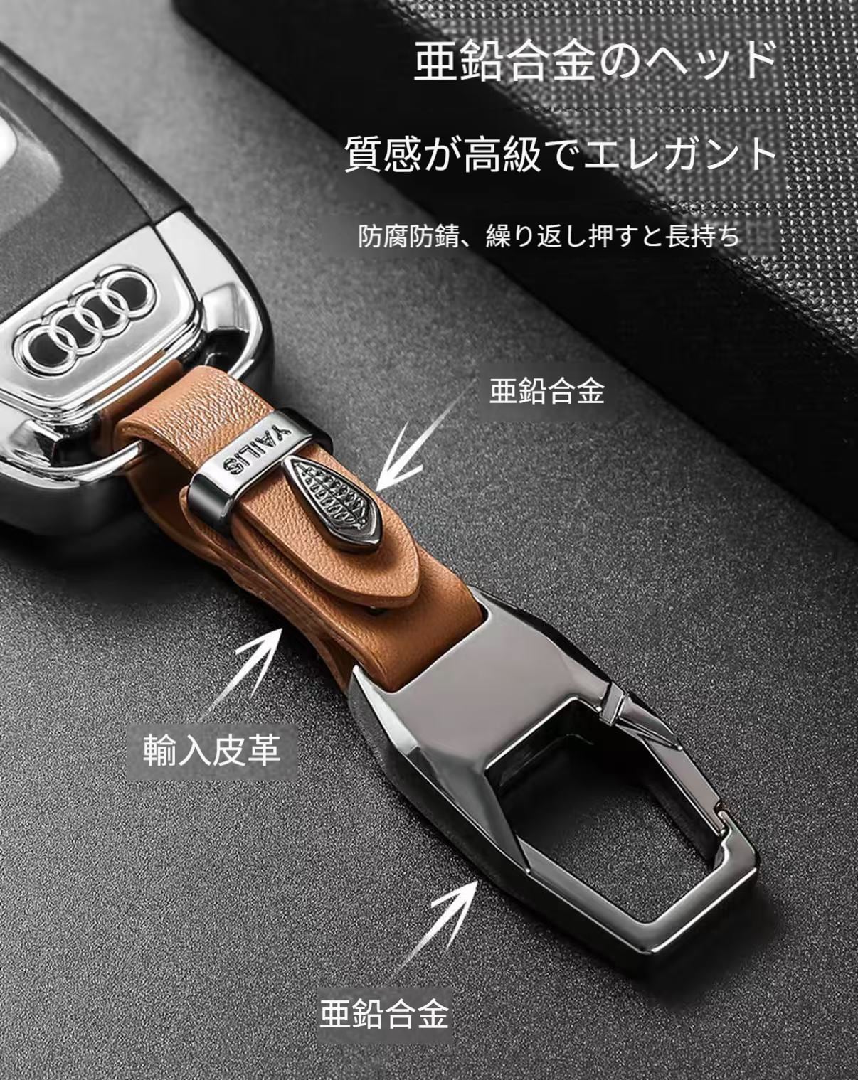 自動車キーホルダー 高級多機能留め具付きベルトキーリング 新作紛失防止アクセサリー 精巧なデザイン
