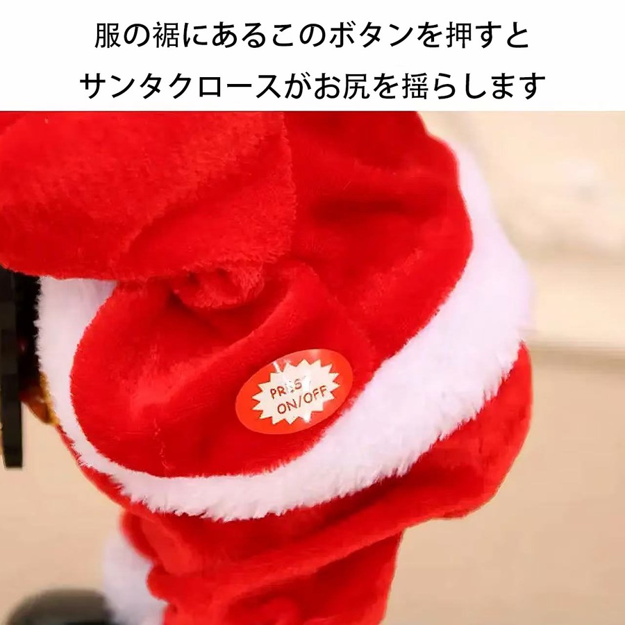 この電動飾り物の操作は非常に簡単で、スイッチを軽く押すだけで、サンタクロースはすぐに「お尻揺れショー」を始めます。