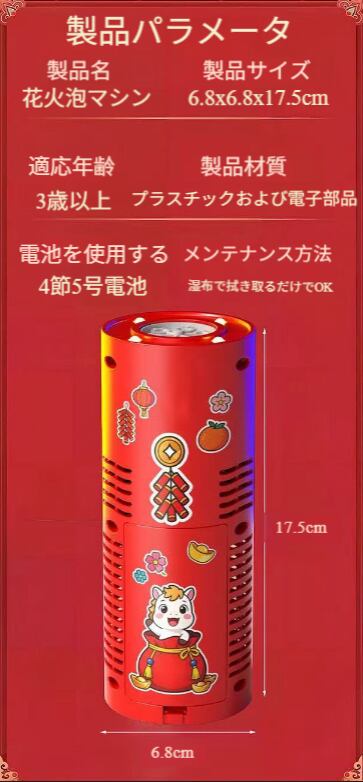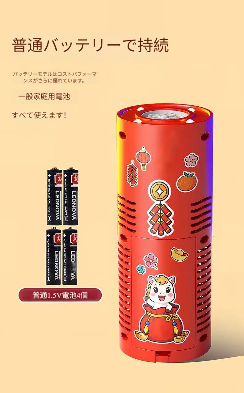 おもしろい爆竹の音響効果を搭載、ボタンを押すと「パリパリ」と鳴る音が鳴り、安全で煙も出ません。