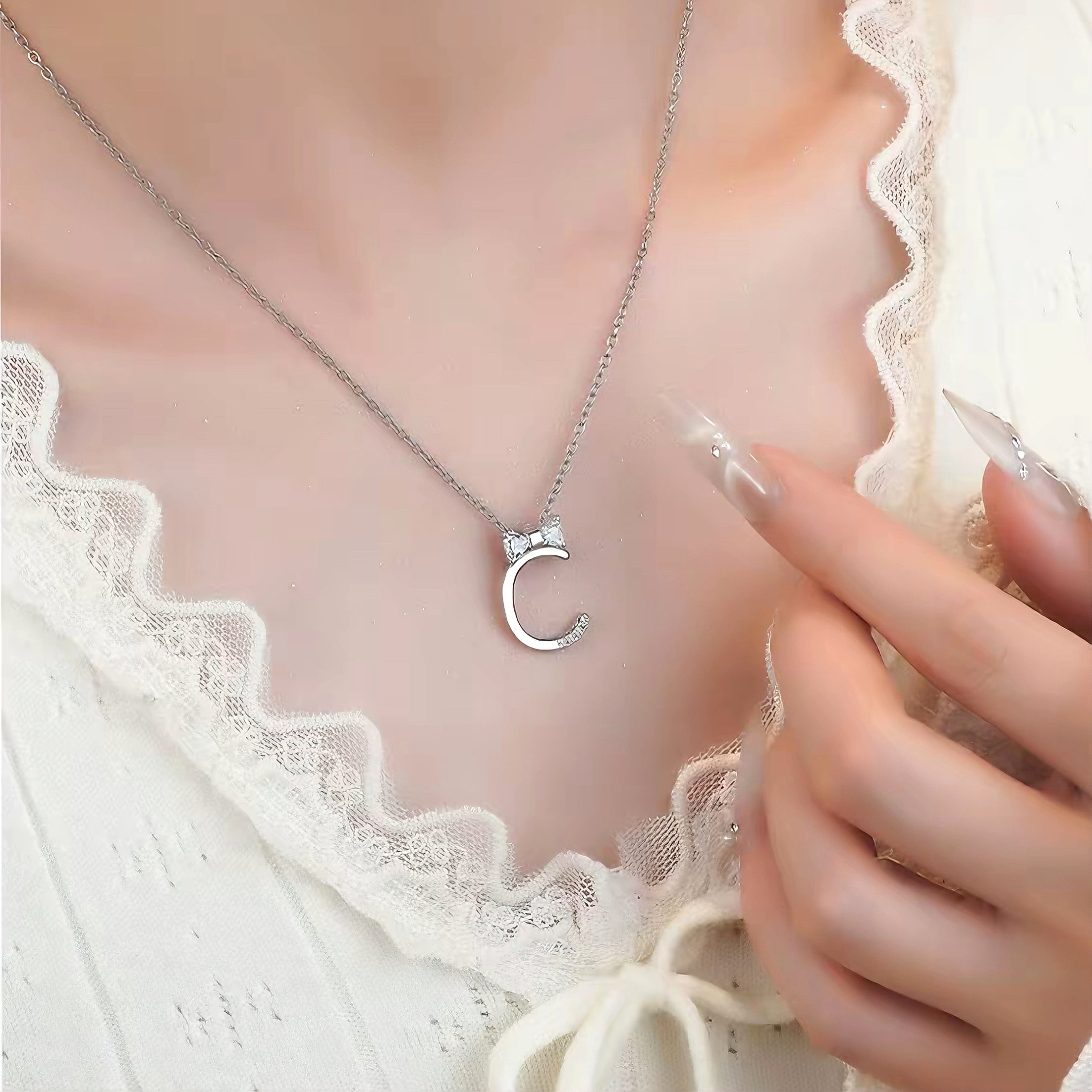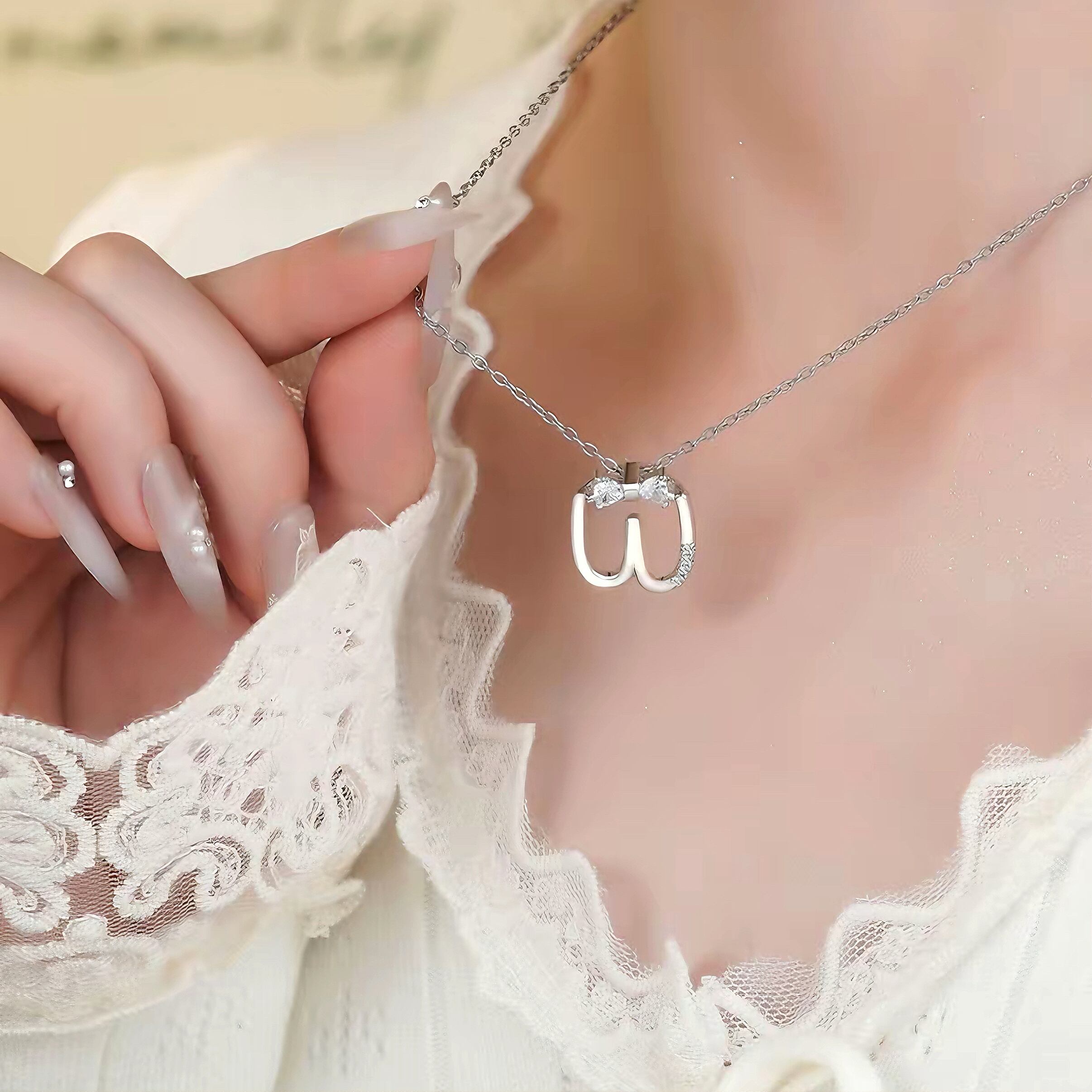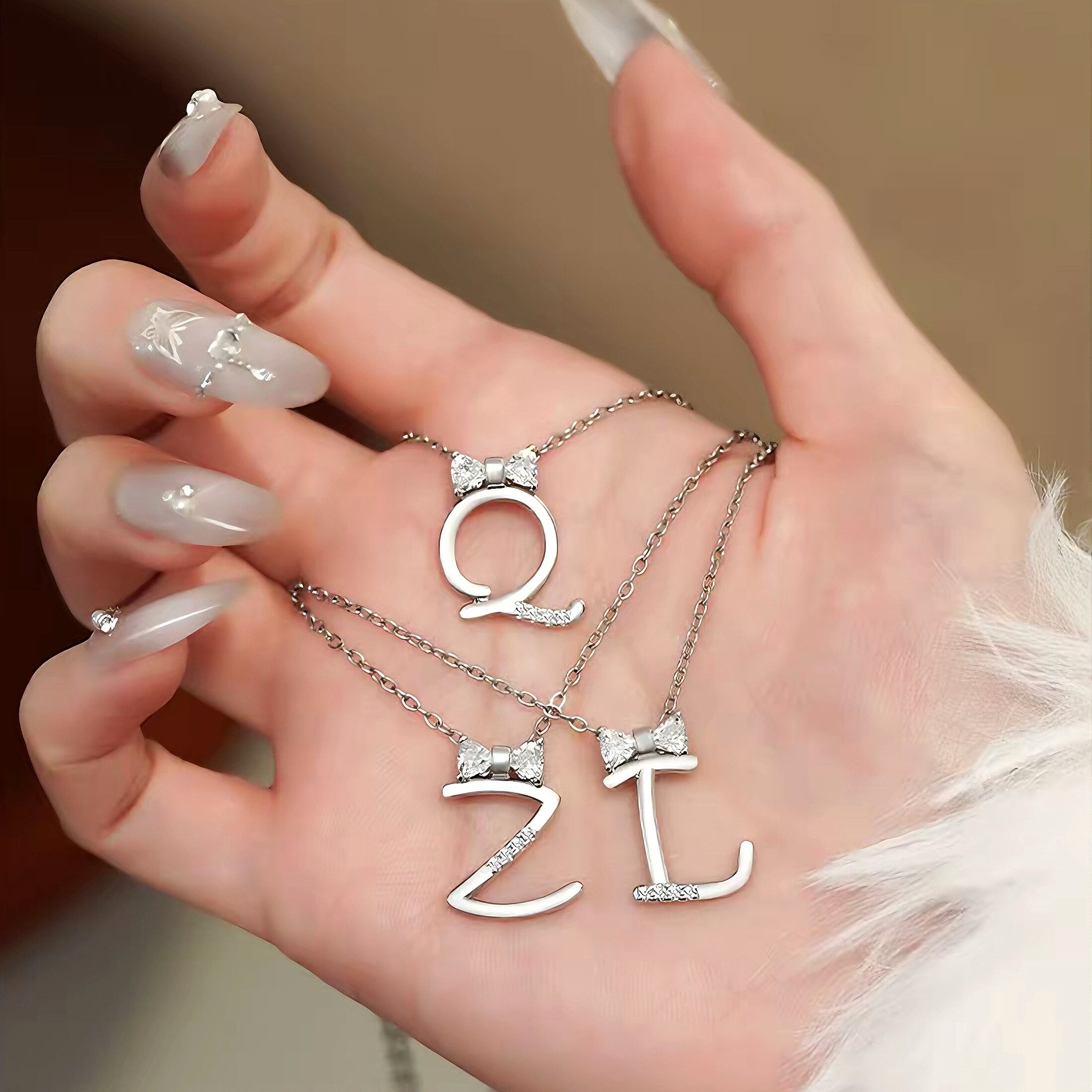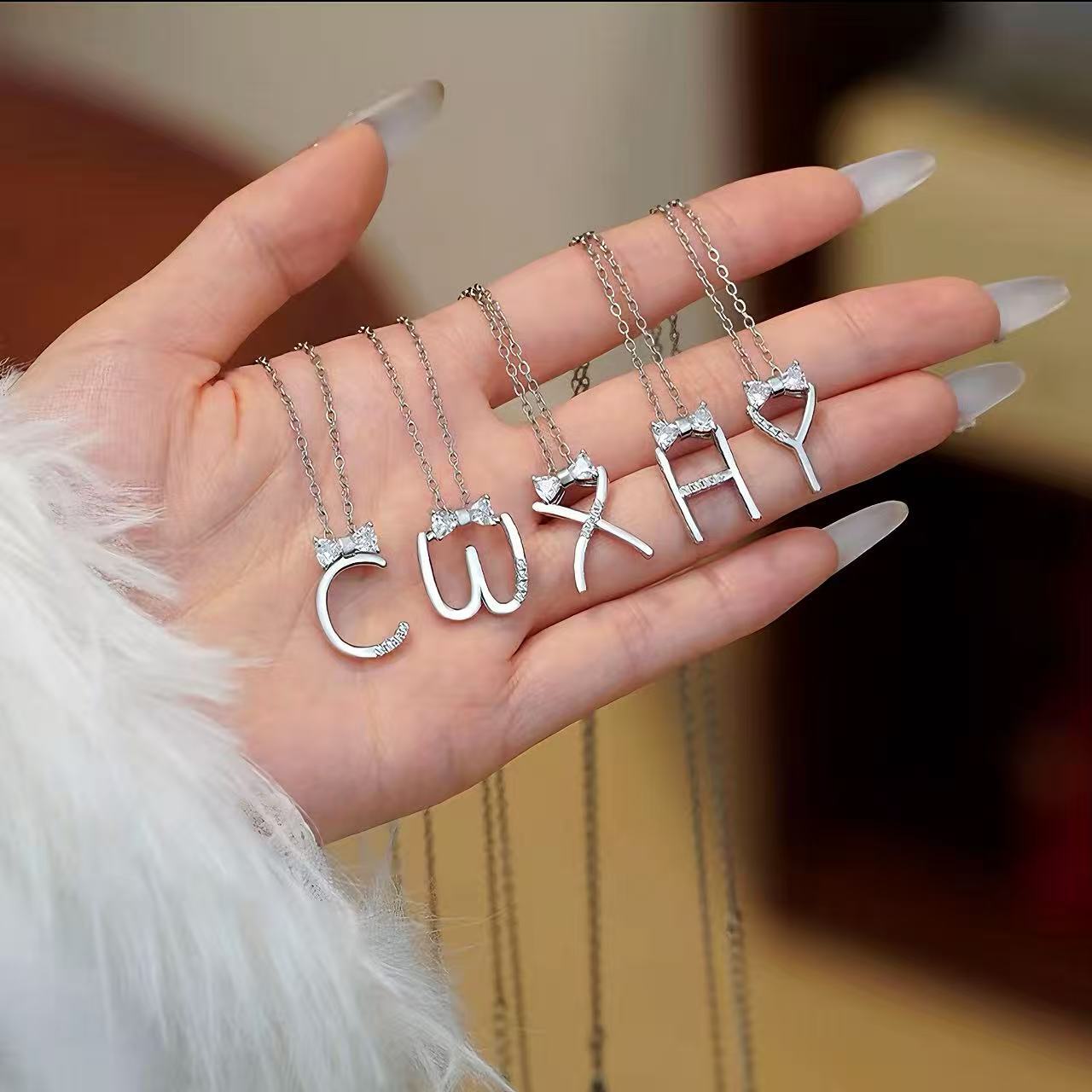 このネックレスはアルファベットの要素とリボンの形状を融合させており、シンプルでありながらもファッション感を失わず、着用者の独特なセンスと個性魅力を簡単に引き立てます。