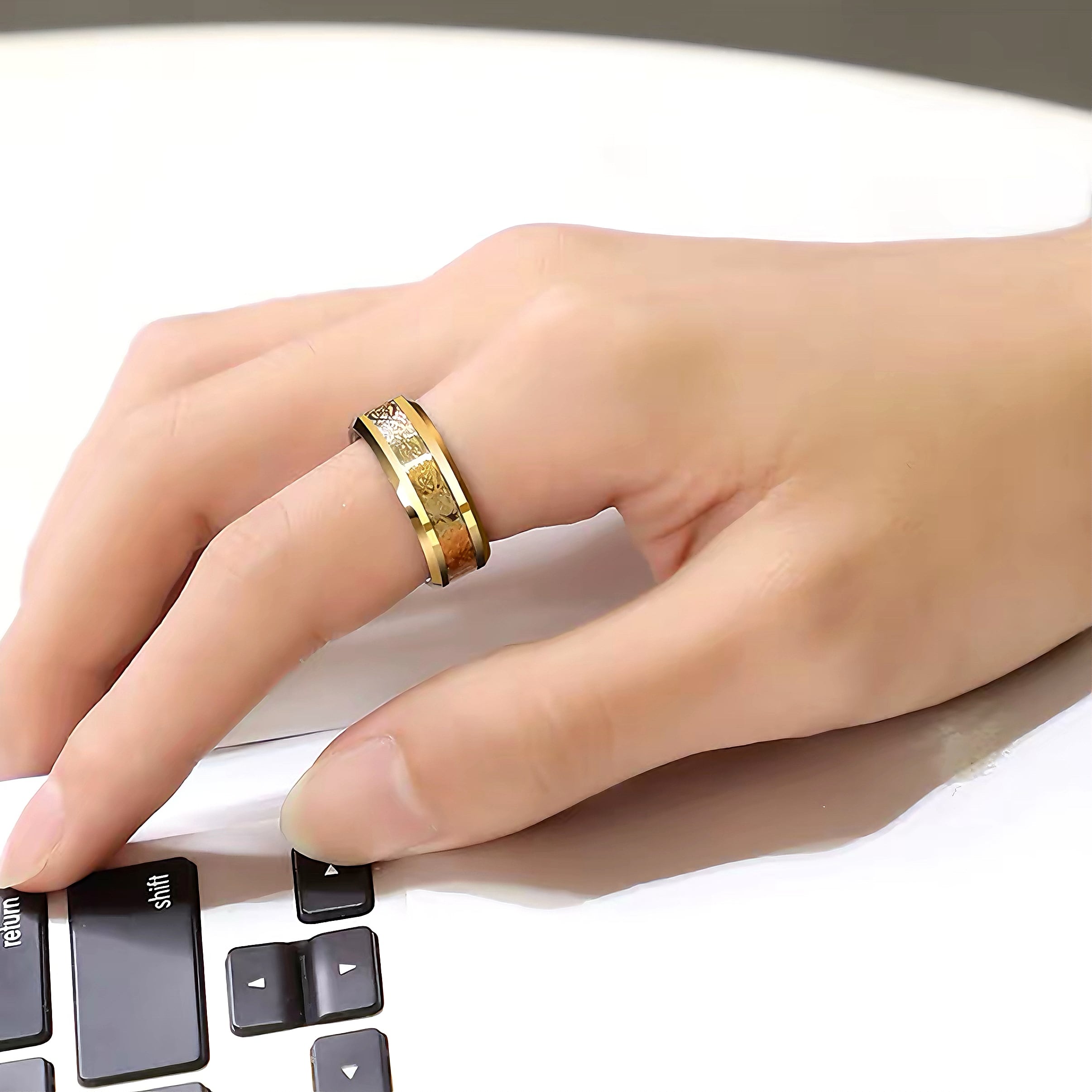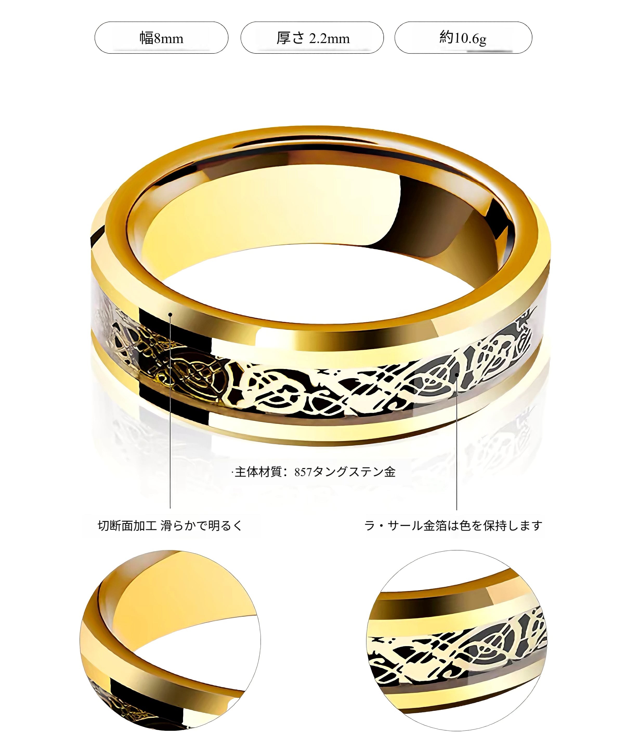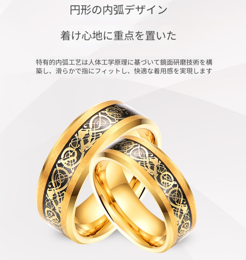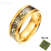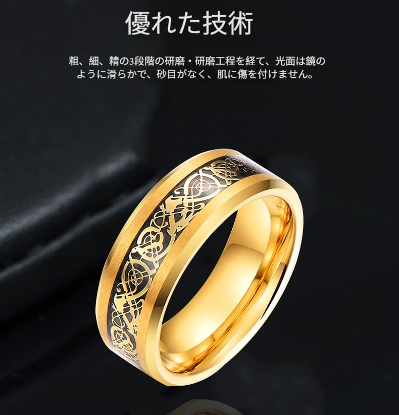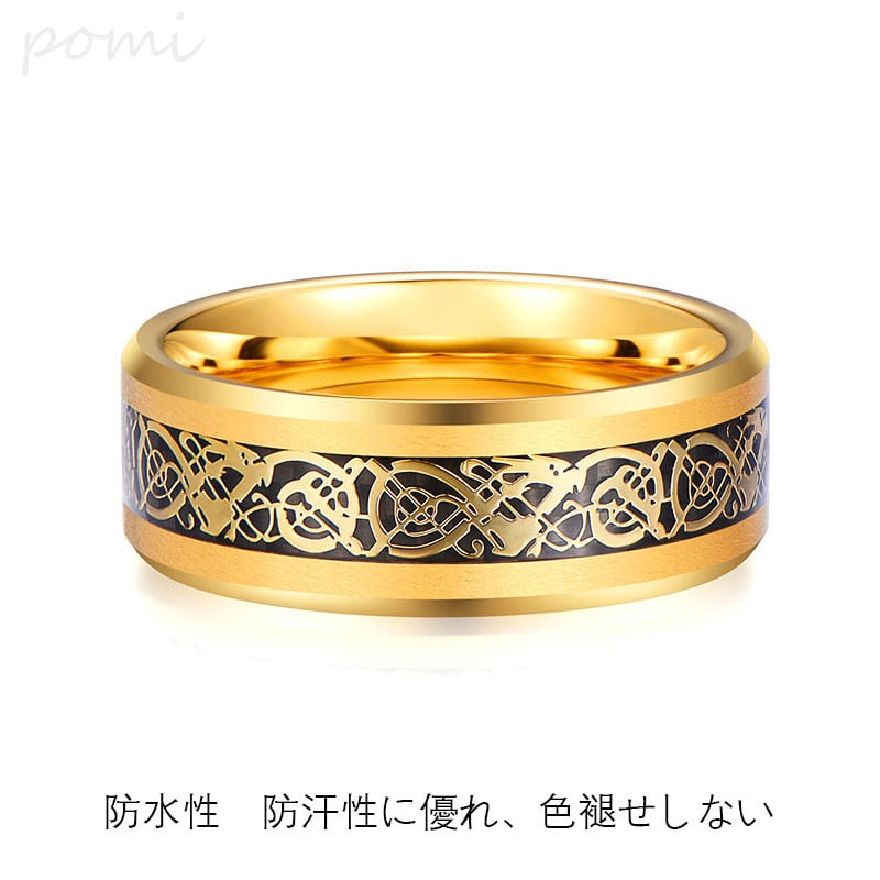 タングステンゴールドの龍紋メンズリング トレンド男子向けの個性的で高級感満載のタングステンスチール製