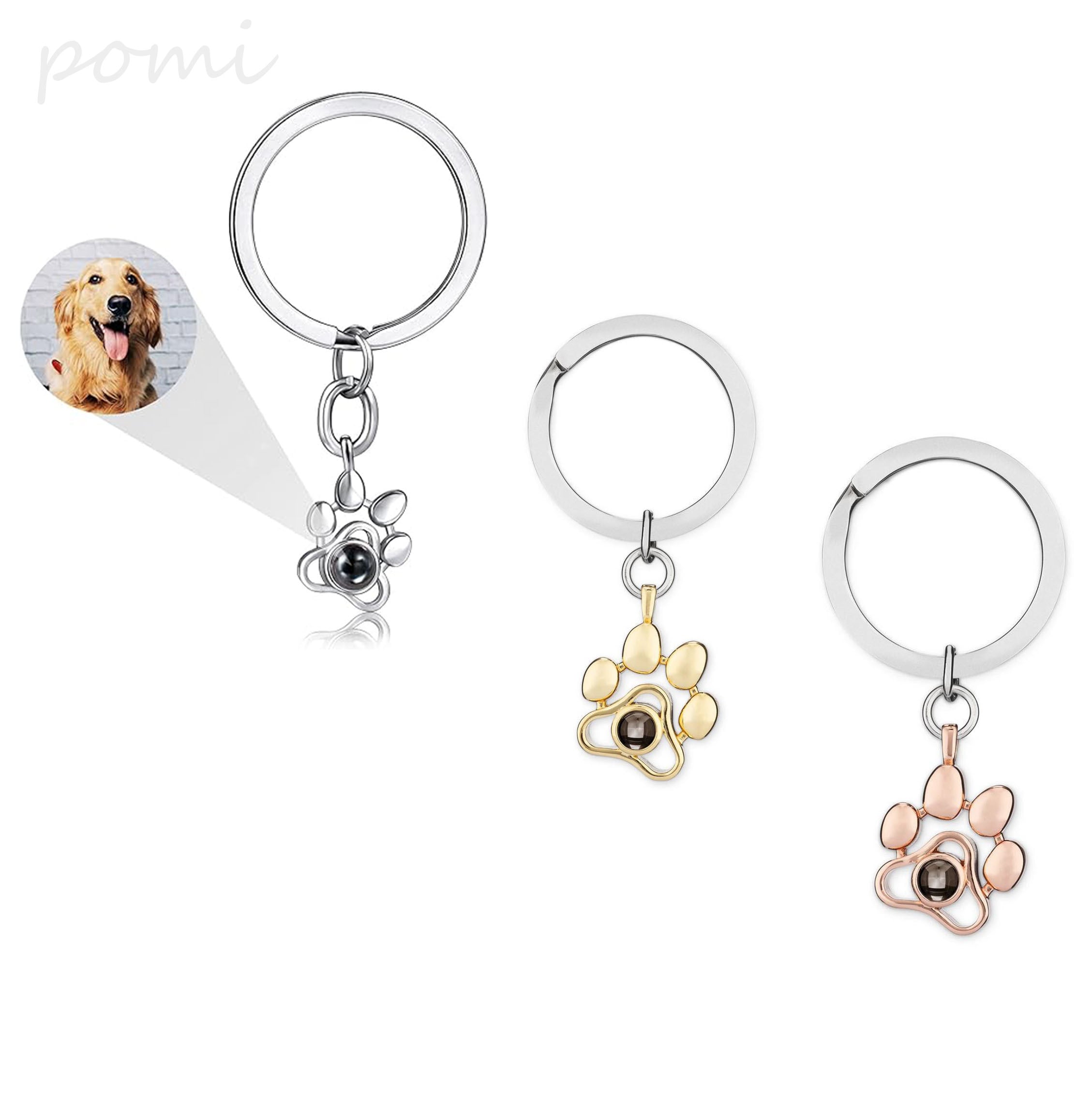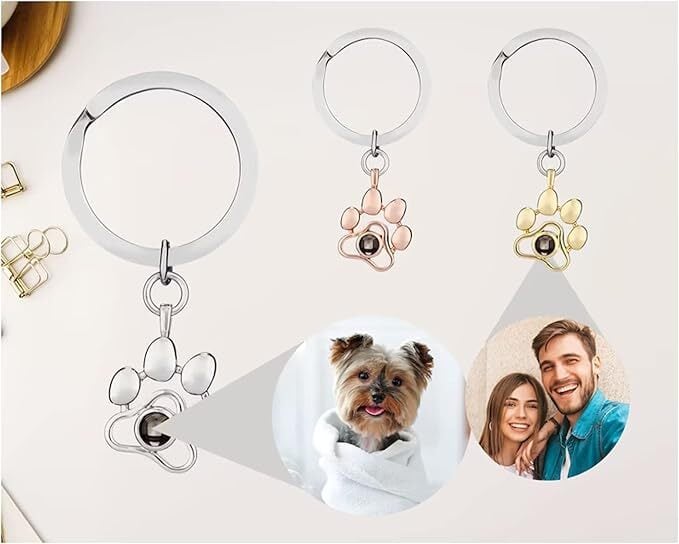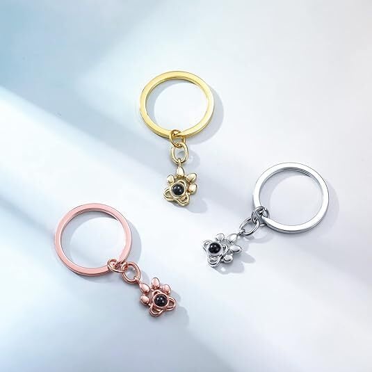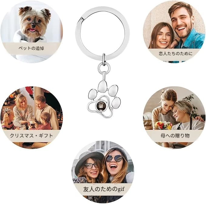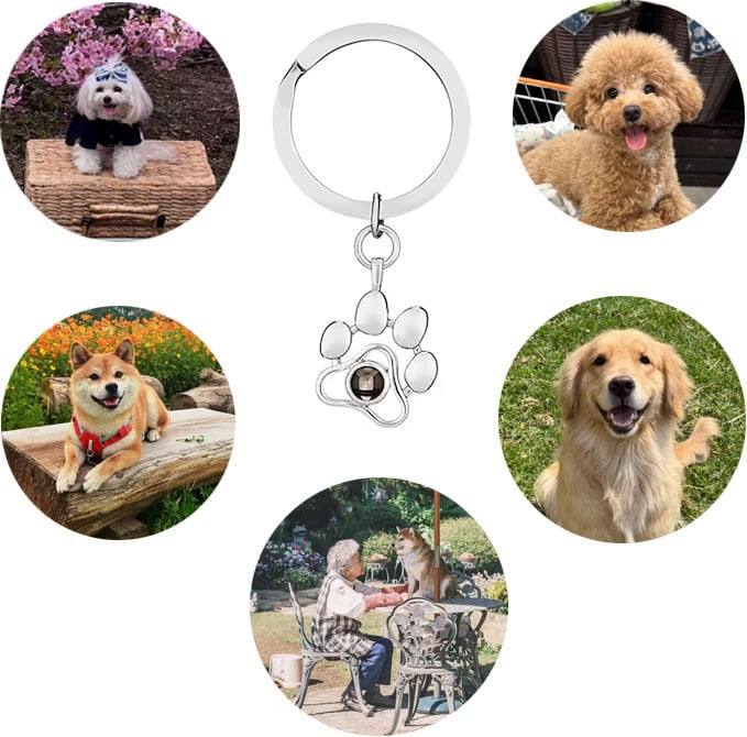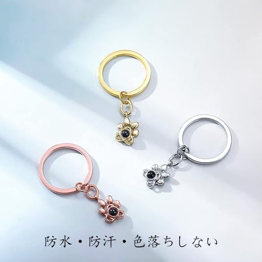 チタンスチール製の犬の足跡投影キーホルダー、肉球のかわいいペット動物の足跡