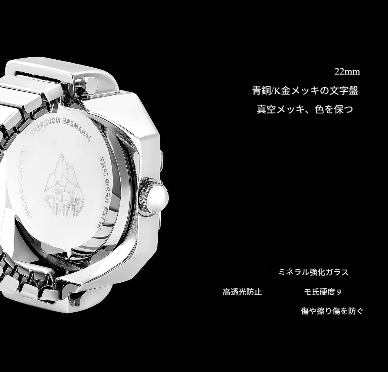 時計ケースとベルトは高品質の金属素材、銅に白金/K金メッキを施したものを使用し、優れた耐磨性と耐腐食性を持っている。