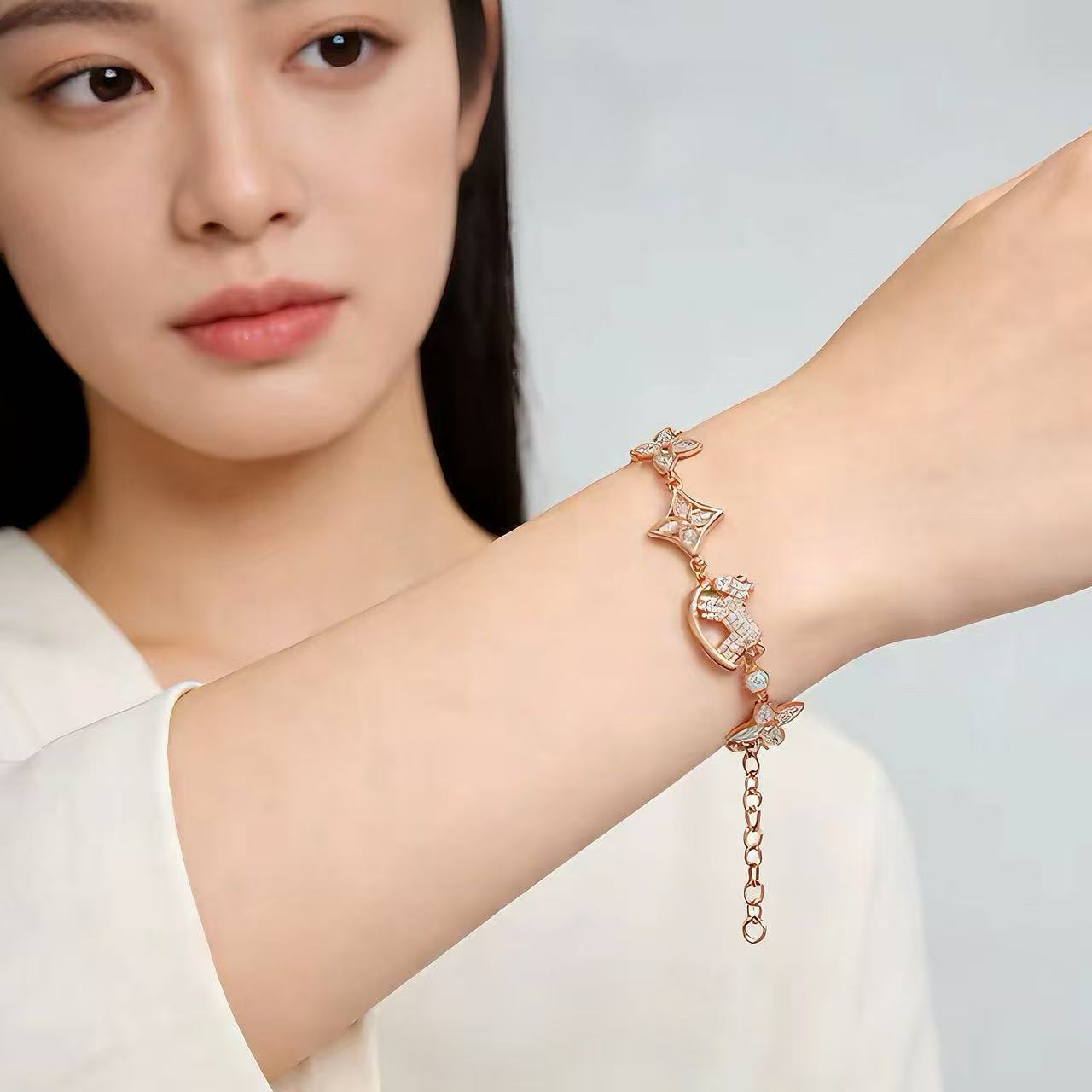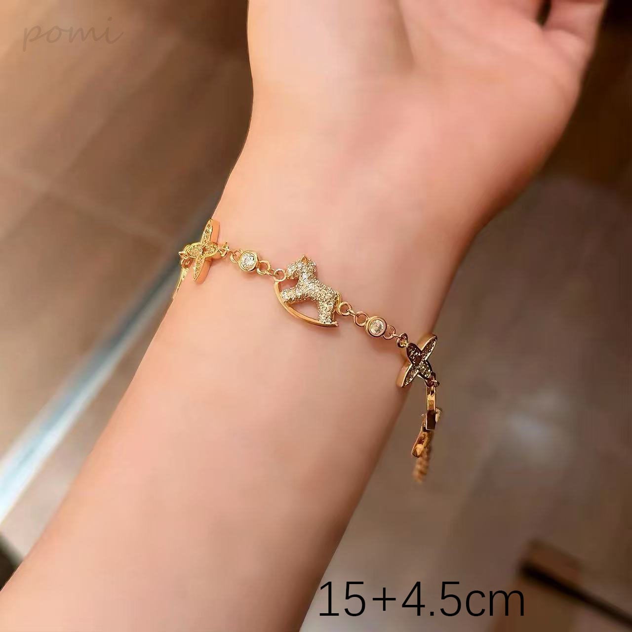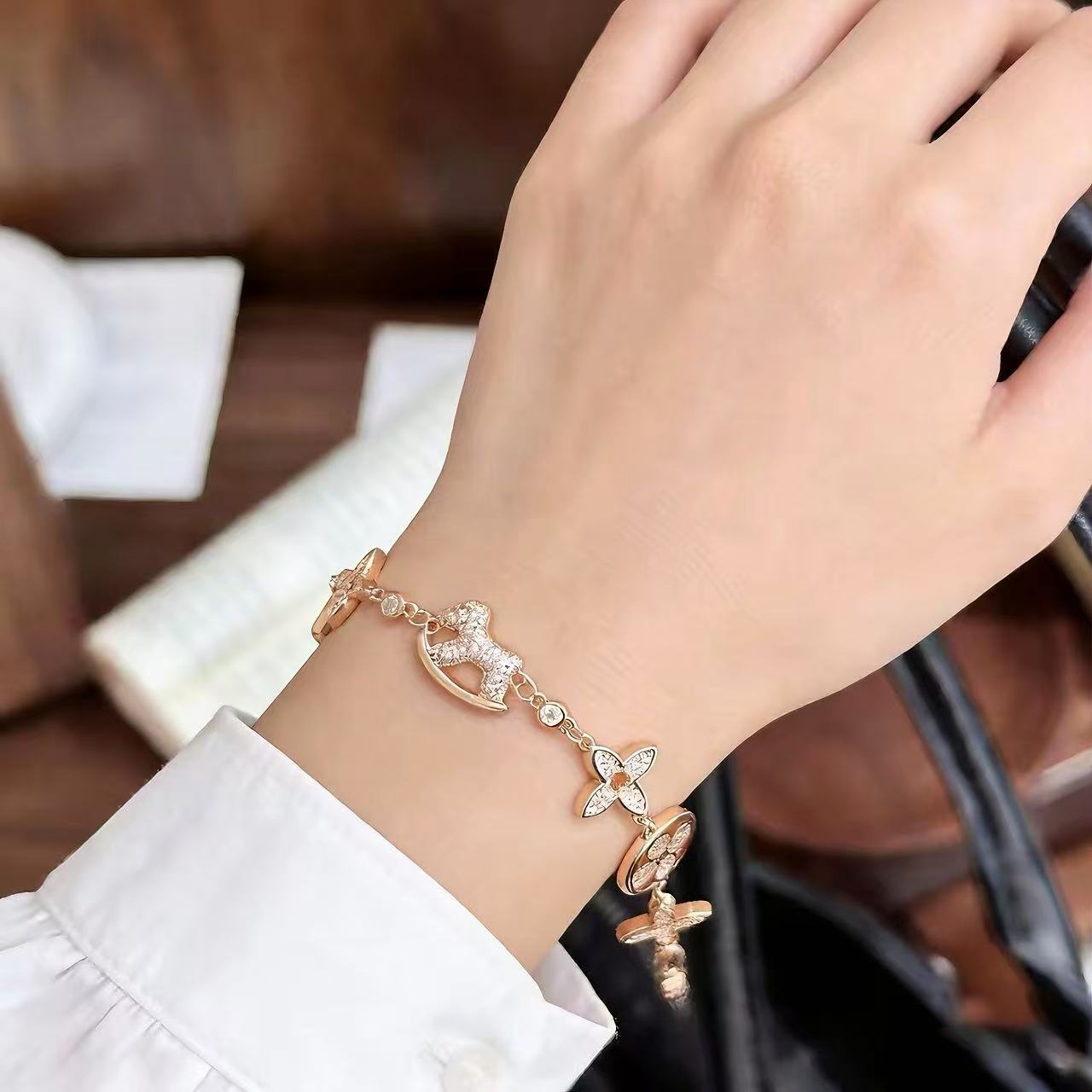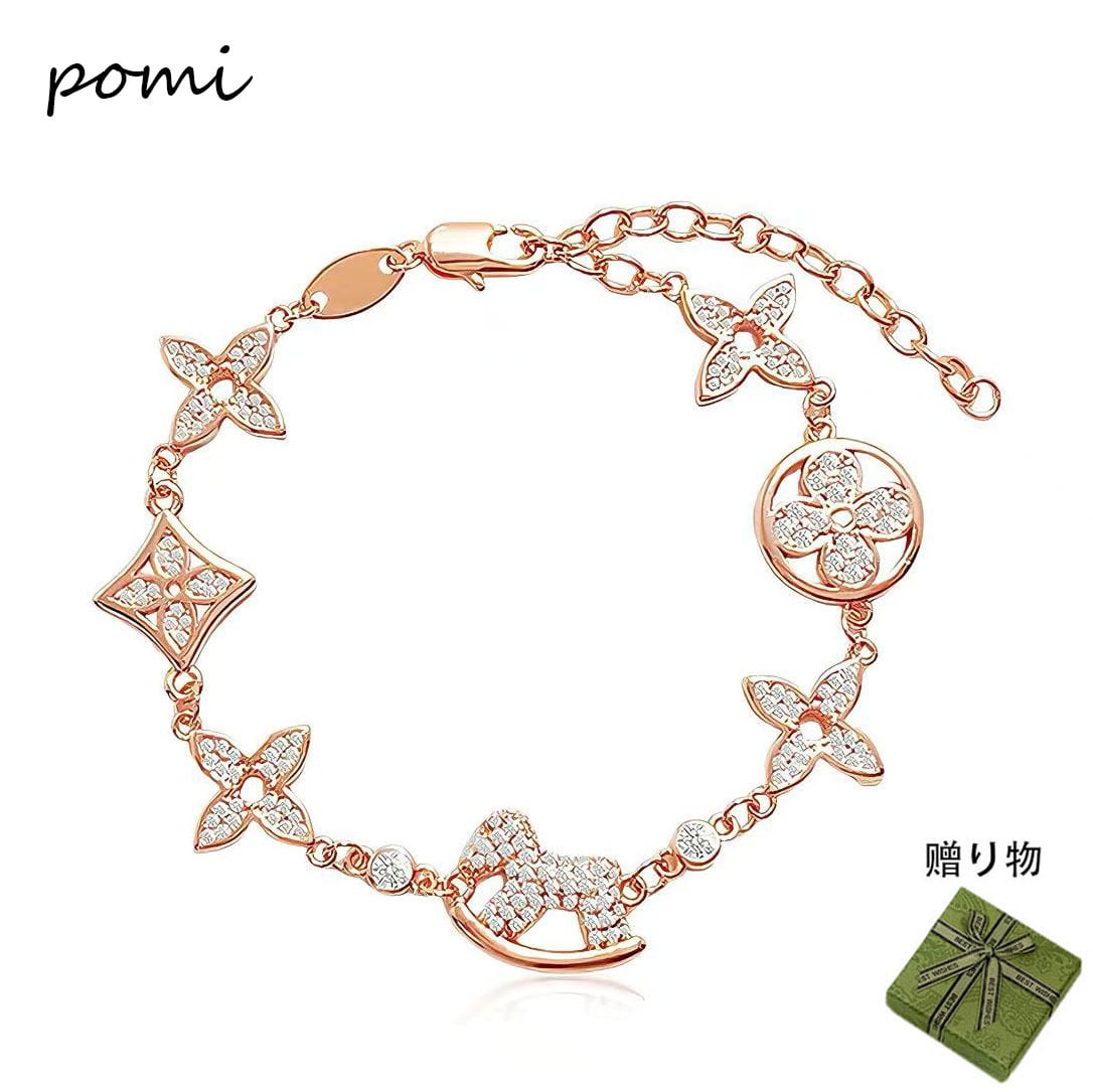 六花木馬ブレスレット ダイヤモンド入り 軽奢感でオールマッチなギフト 精巧な銅合金ブレスレット