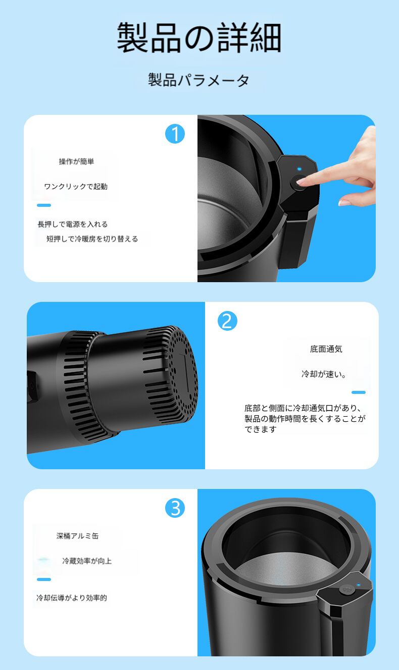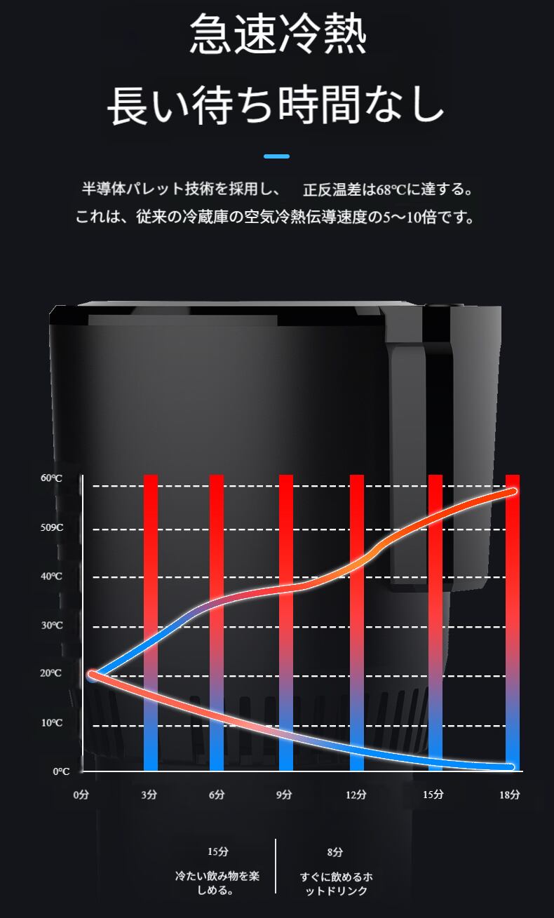 先進の冷却技術を採用し、短時間でカップ内の飲み物を急速に冷やすことができる。