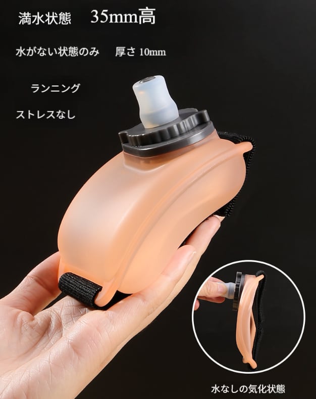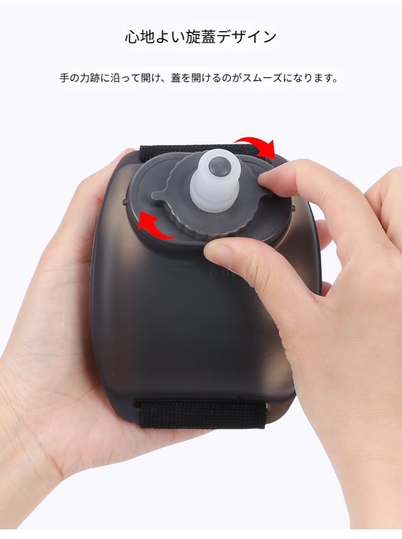 従来の水筒の持ち運び方式を突破し、革新的に手首着用デザインを採用しています。