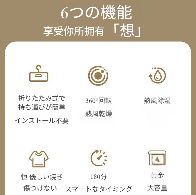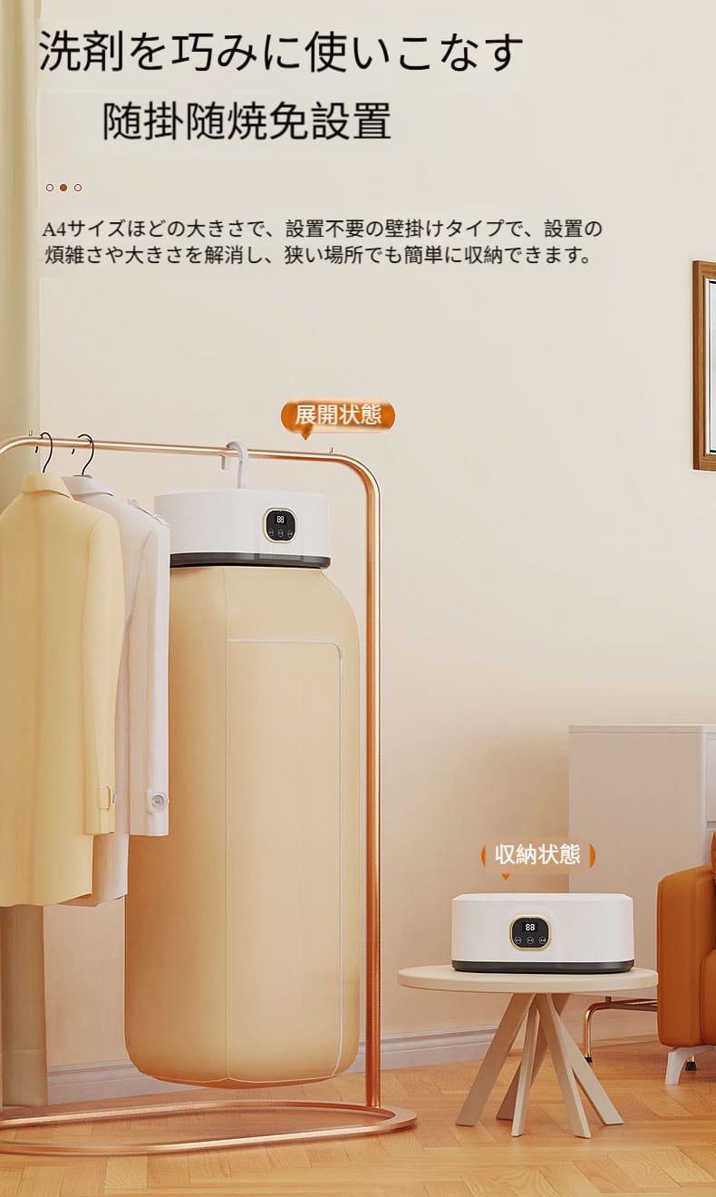 軽量なボディに折りたたみ構造を組み合わせ、収納時に場所を取らず、スーツケースや寮の隅などに簡単に収納可能。出張や自宅での乾燥ニーズにいつでも対応します。