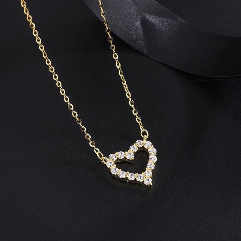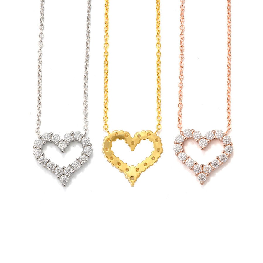 ハートペンダントネックレス、高品質フルダイヤモンドクレビックネックレス、高級でシンプル、Vゴールド合金電気メッキ