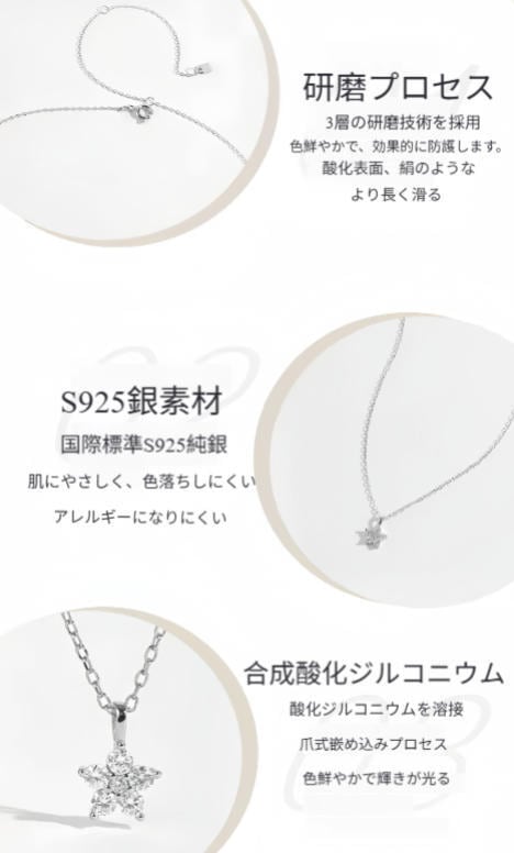 国際基準のS925純銀を厳選して作られており、銀含有量は92.5%に達し、質感が温かくて繊細で、肌に優しくアレルギーが起こりにくいです。