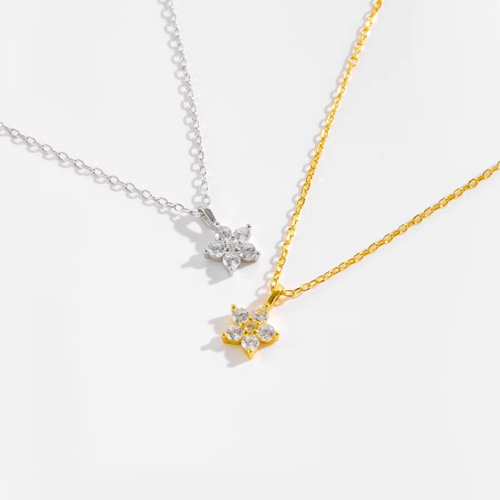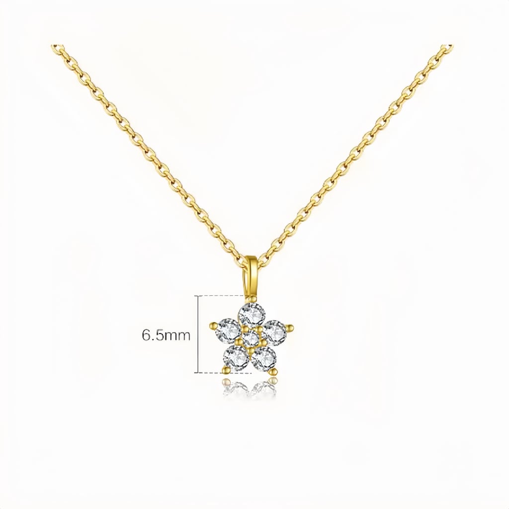 S925純銀 ジルコニア小花ネックレス シンプルでおしゃれなクラビクルチェーン
