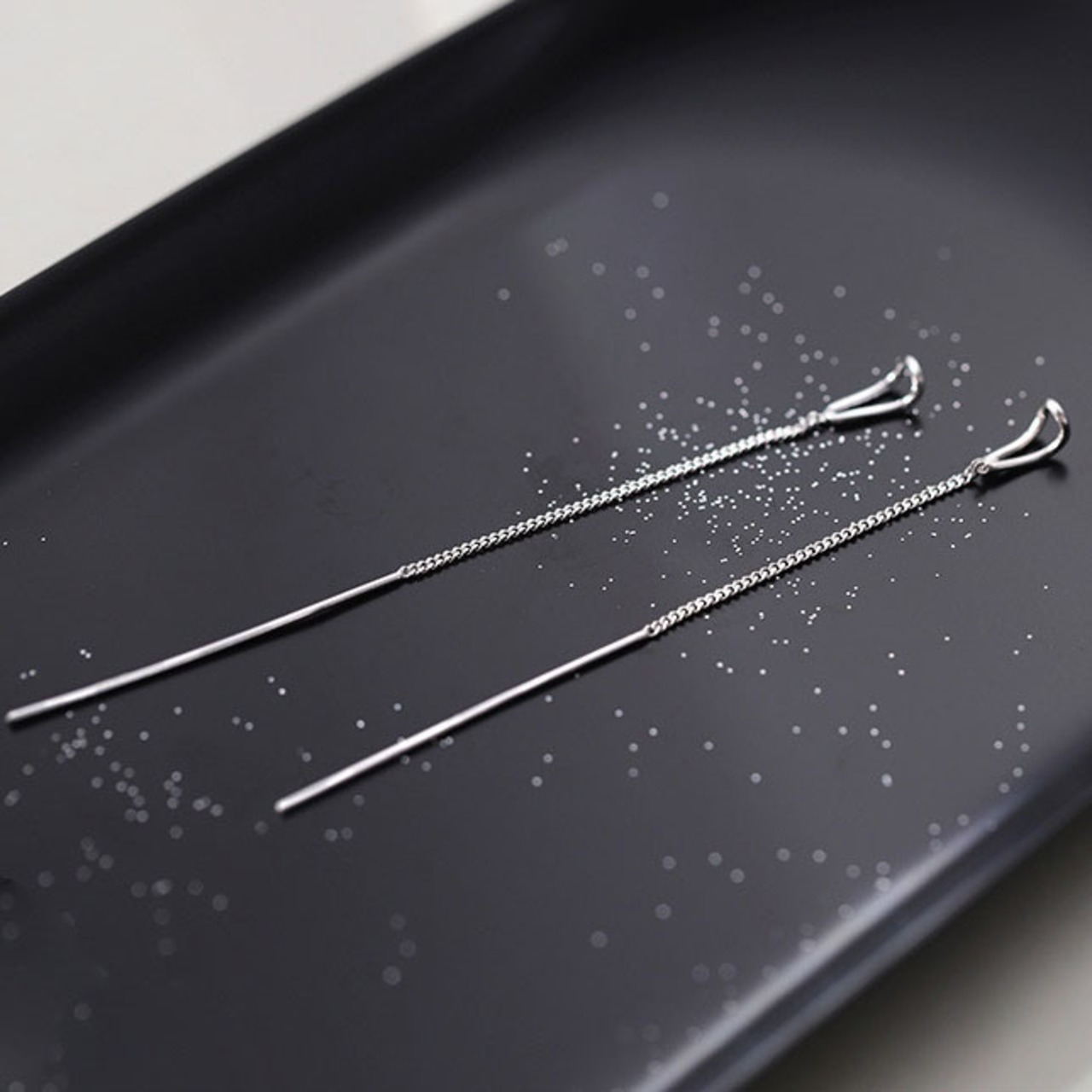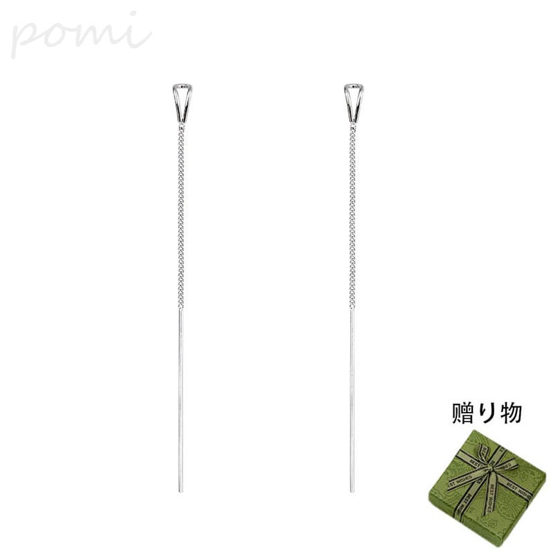 ティアドロップフリンジイヤリング/イヤースタッド、シンプルなロングデザインで顔をスリムに見せる、白銅に白金メッキ