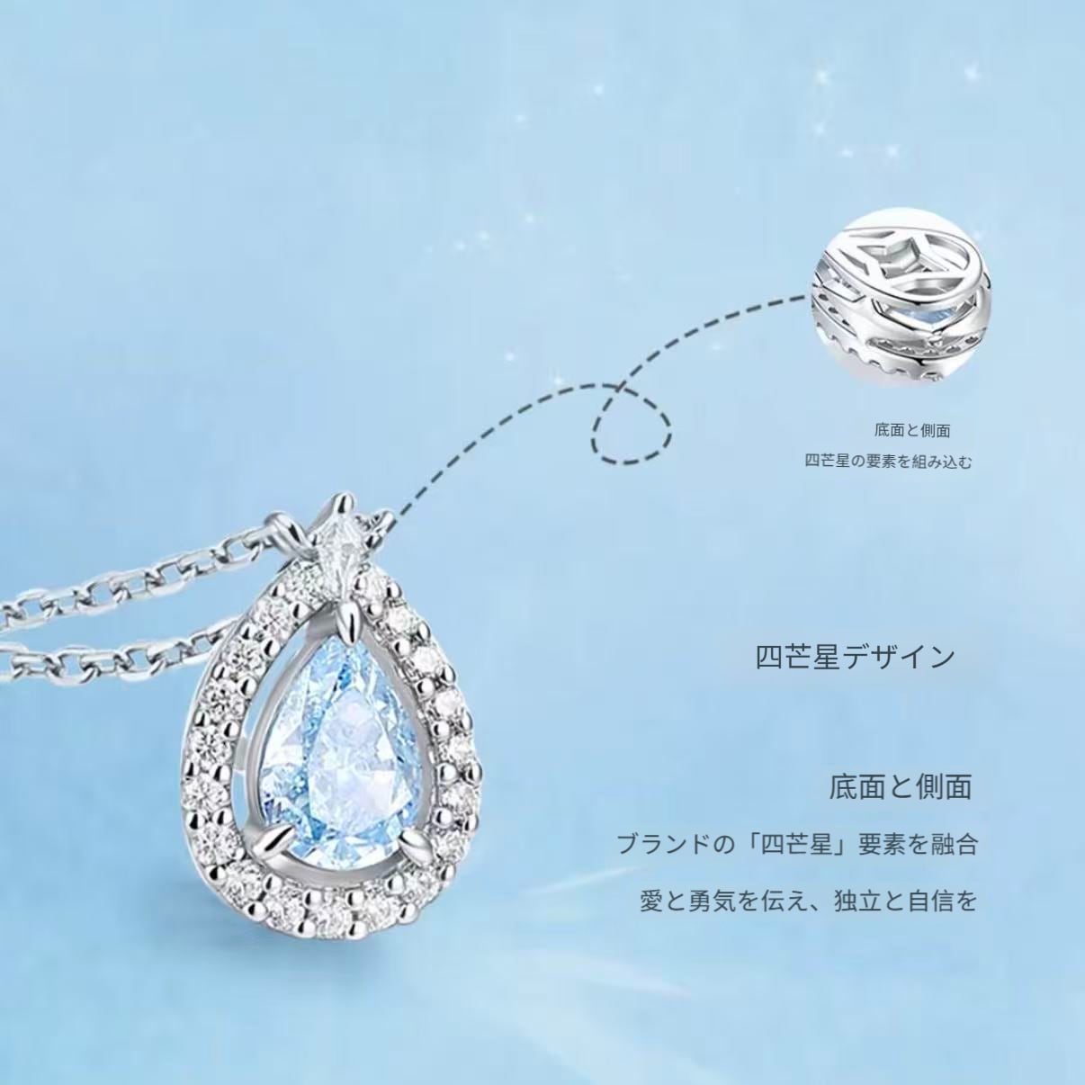 ティアドロップのカットデザインで、エッジ部分を細かく磨き上げ、冷調のブルーメッキと組み合わせ、清冷感と高級感を併せ持つビジュアル効果を演出。