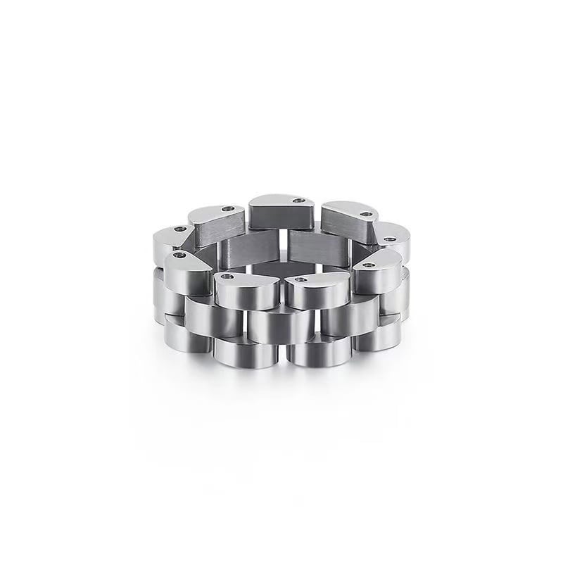 リングバンドとチェーンが一体成型で作られており、エッジが滑らかで刺さることなく、丈夫で耐久性に優れ、細部にまで品質感が漂います。