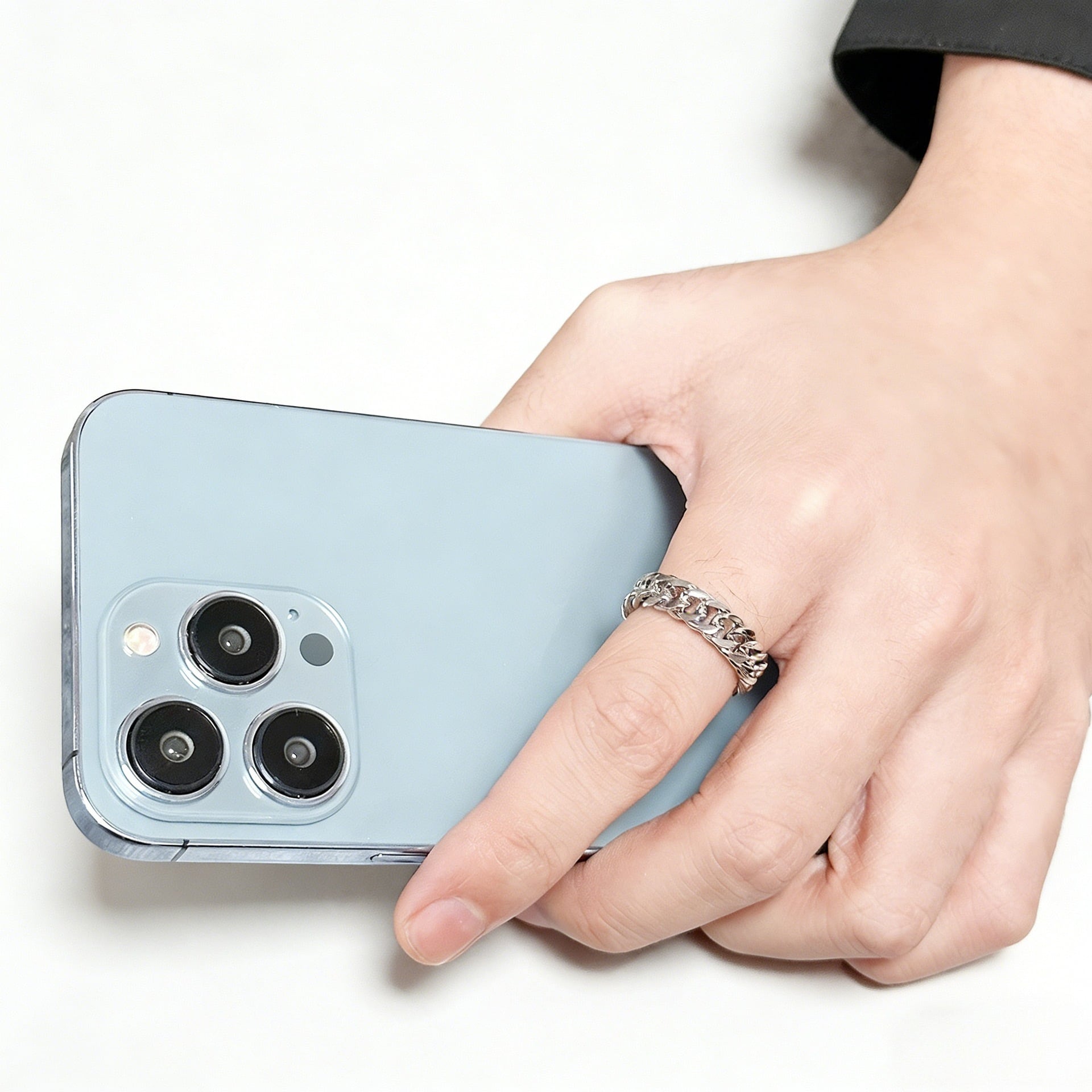 リング本体は滑らかなチェーン形状を採用し、環が互いに繋がっており、層感と動的な美しさに富んでいます。
