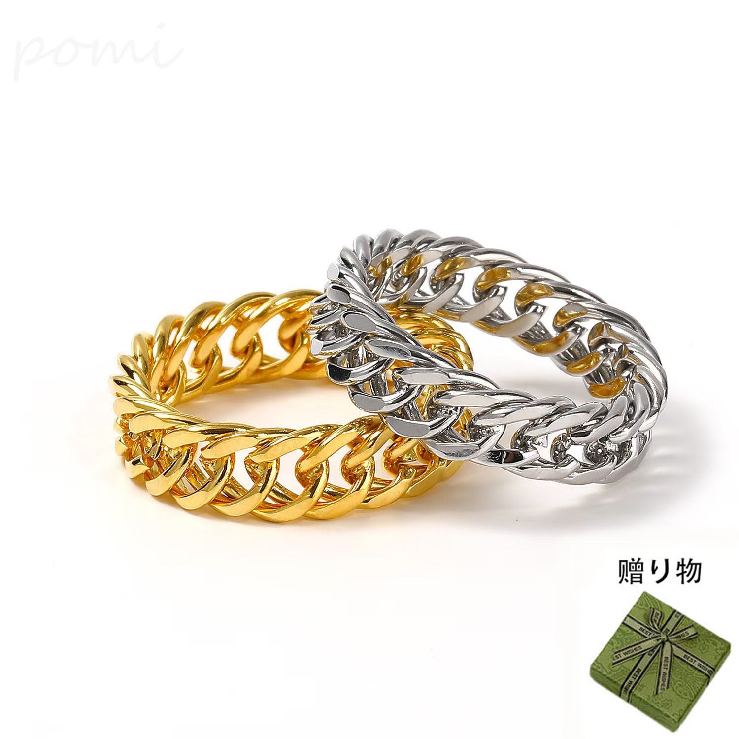 チェーンリングアクセサリー、ファッショナブルでどんなスタイルにも合わせやすい指輪、ステンレス製