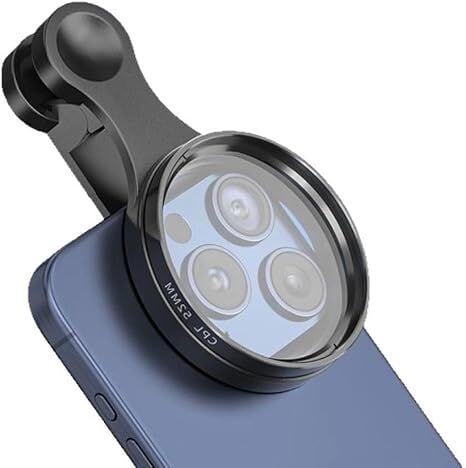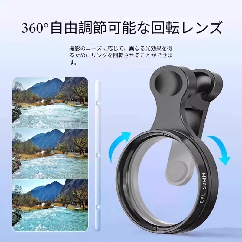 スマートフォン用偏光フィルター、専用の写真撮影フィルター、HDプロフェッショナルCPL偏光レンズ、52mm通用、補助撮影用