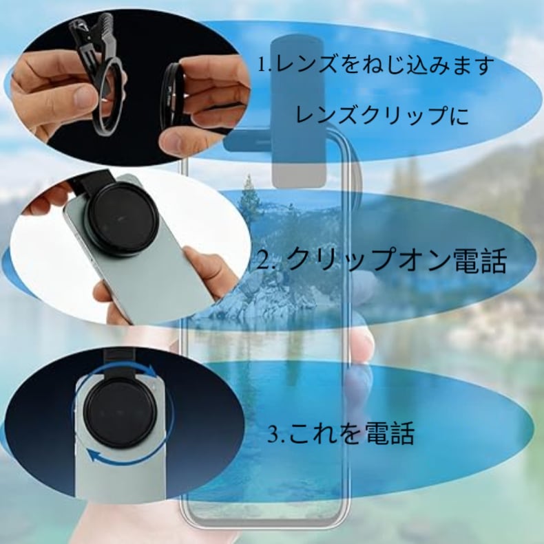主流のスマートフォン外接レンズ(スマートフォンレンズ外径が52mmの場合に対応)に適合し、三脚やフィルターホルダーなどのアクセサリーとも互換性があり、取り付けが簡単で安定感があります。