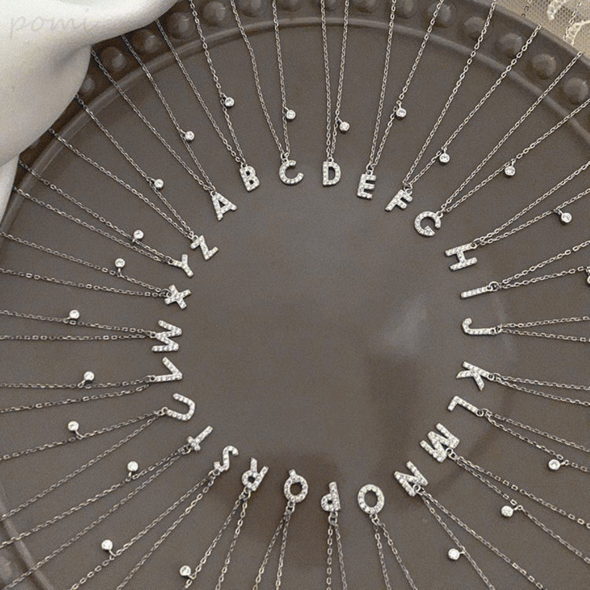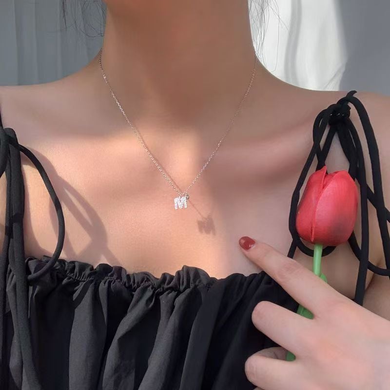 シルバーカラーの26文字小ダイヤネックレス 女性向け エレガントでシンプルなクレビクル(锁骨)チェーン 銅メッキ