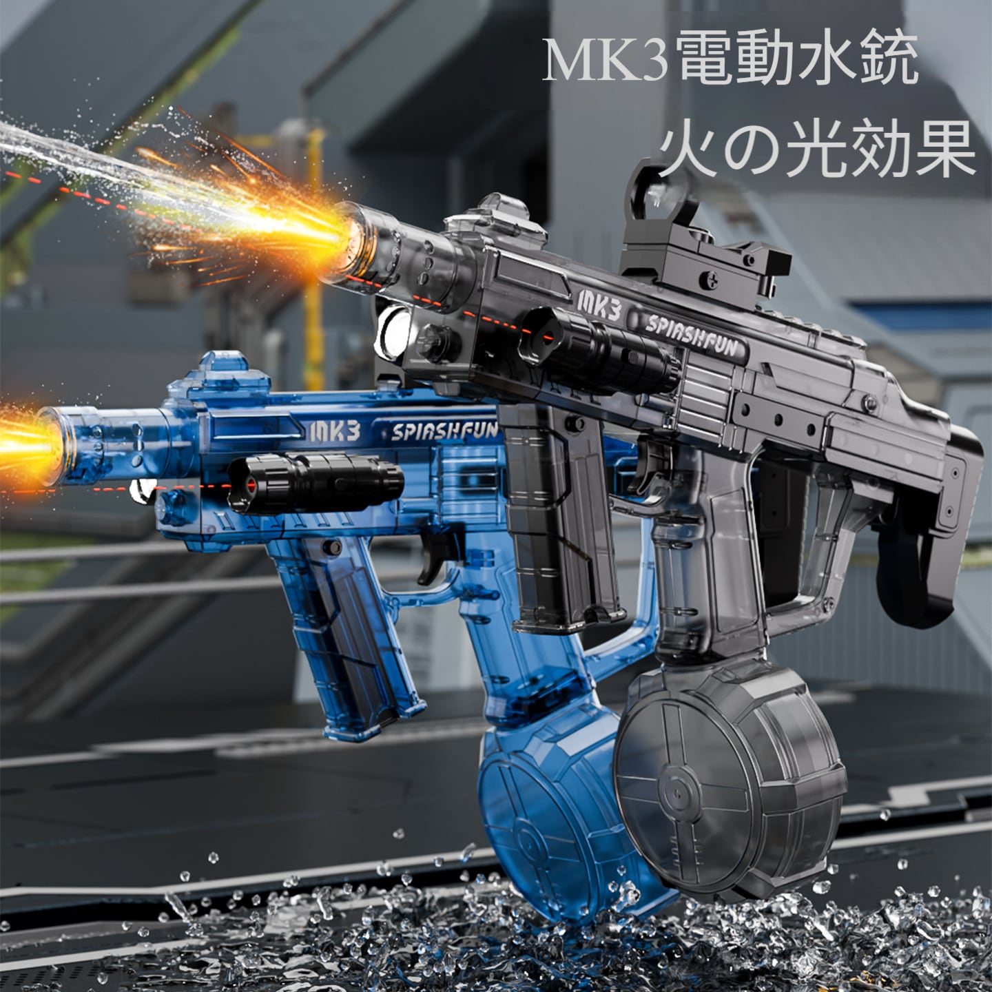 電動連射式炎を噴く特殊効果水銃 大容量で引き戻し機能付き高圧水銃