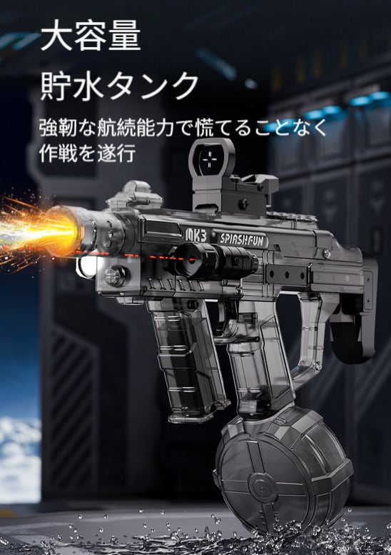 大容量タンクを装備し、頻繁に水を補給する手間を省き、長時間の水遊びを存分に楽しむことができます。