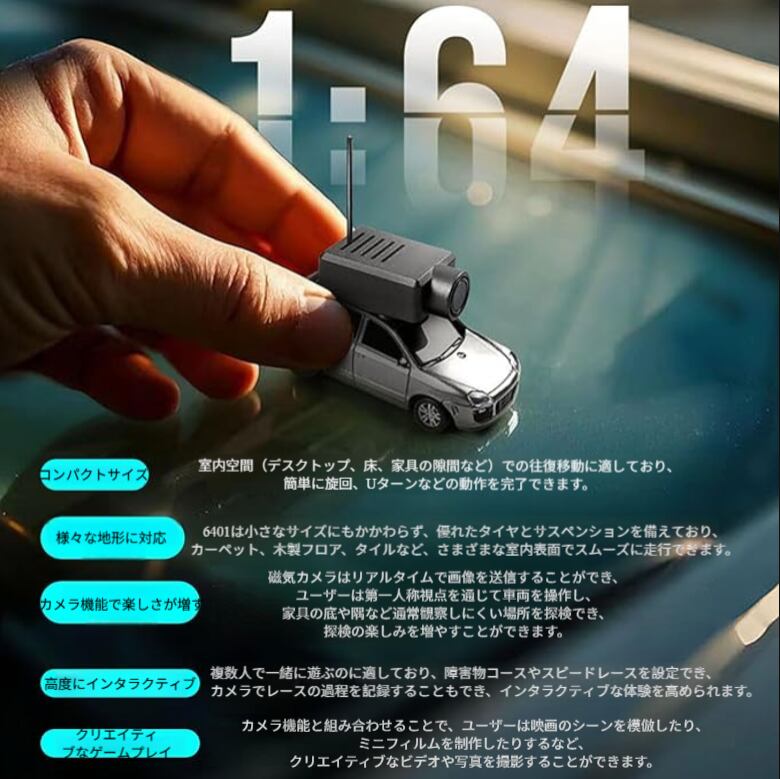 フルスケール1:64リモコンカー ポルシェ 写真撮影自動安定化リアドライブミニカー ミニRCカーモデル FPV