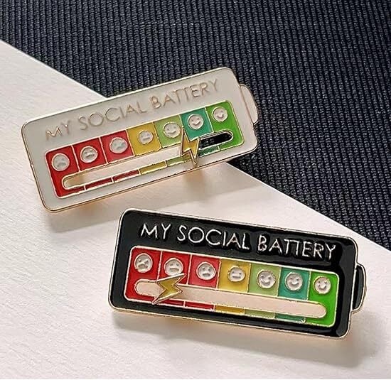 ソーシャルバッテリーブローチ・バッグ用名札・気分変換可能なスライド式稲妻メタルバッジ・アクセサリー・小さなギフト