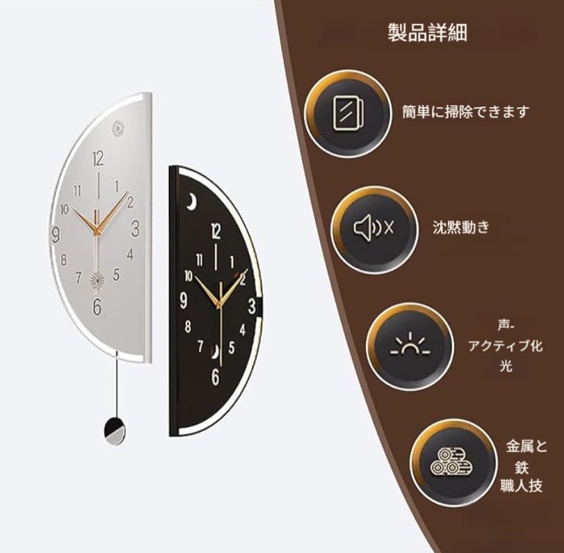 この掛け時計は高品質のムーブメントを採用しており、時間の正確性を確保できます。同時に、ムーブメントの動作時の騒音は極めて低く、ほぼ静音の効果に達することができます。