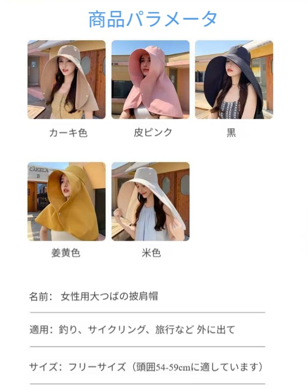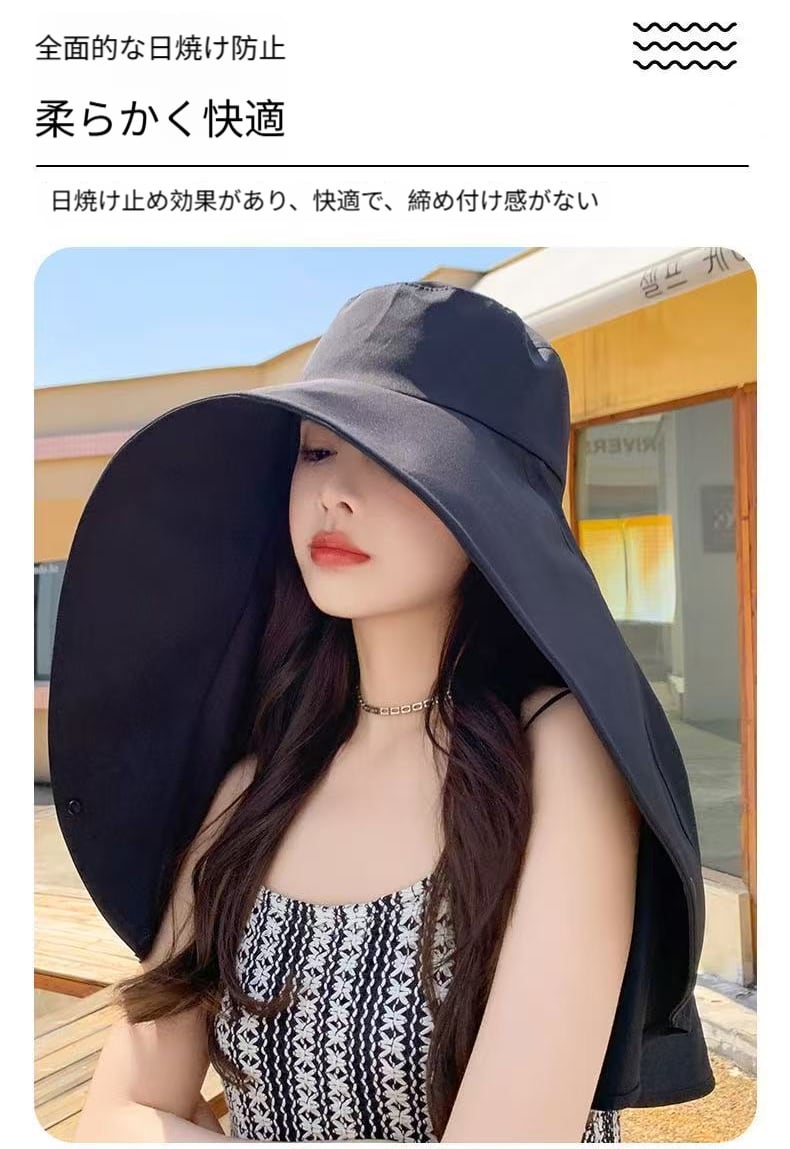 全顔UVカット大つば肩掛け式サンハット 女性用首保護一体型 日焼け防止フェイスカバー付きペーサーマ尾露出型ボーラーハット