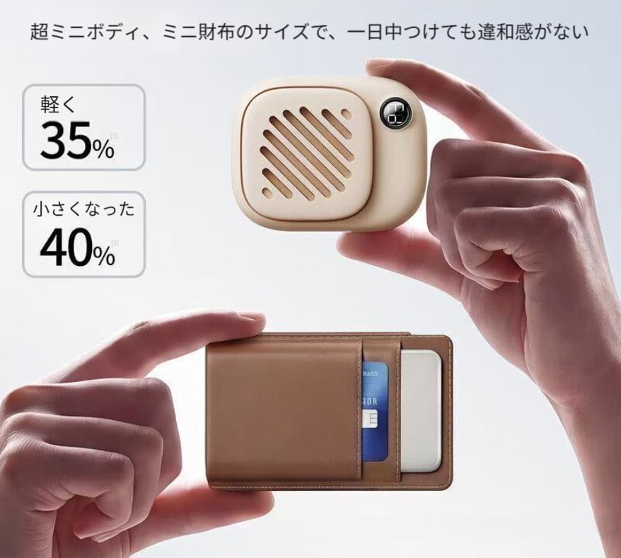 スマートフォンと同じくらいのコンパクトサイズで、ポケットやバックパック、ショルダーバッグに簡単に入れられ、持ち運びに負担がありません。