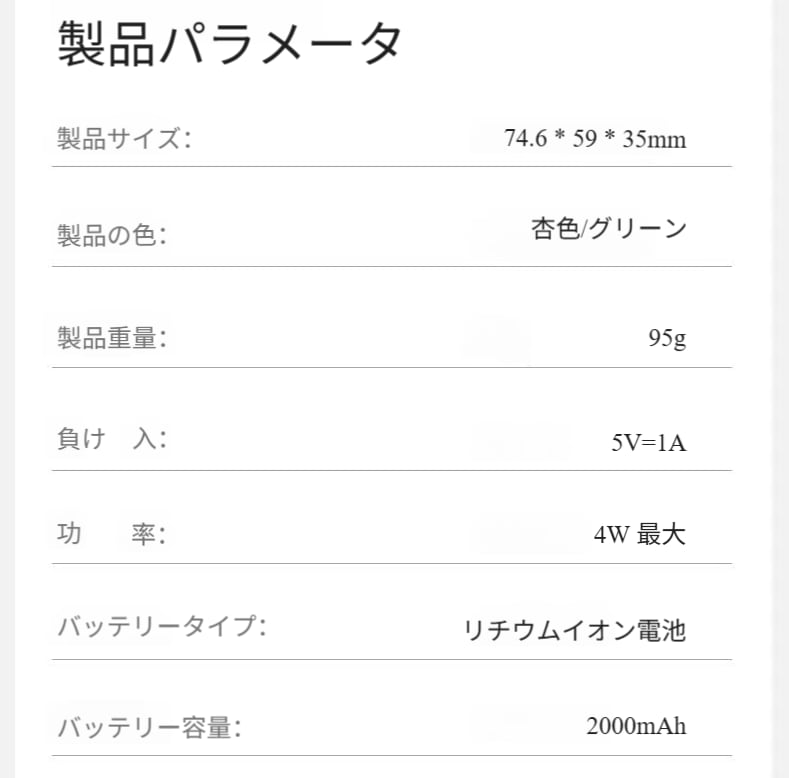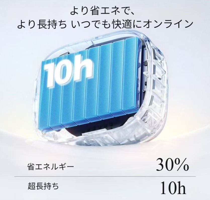 2000mAhの大容量リチウムイオンバッテリーを内蔵し、フル充電状態で低風速時は最大8時間、高風速時は3時間駆動可能。一日中使用できます。