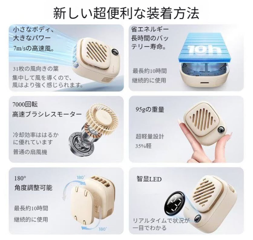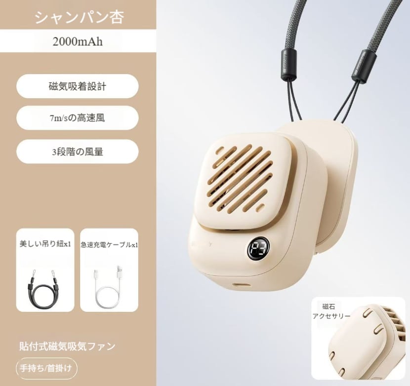 磁石吸着式首掛け小型ミニ携帯扇風機