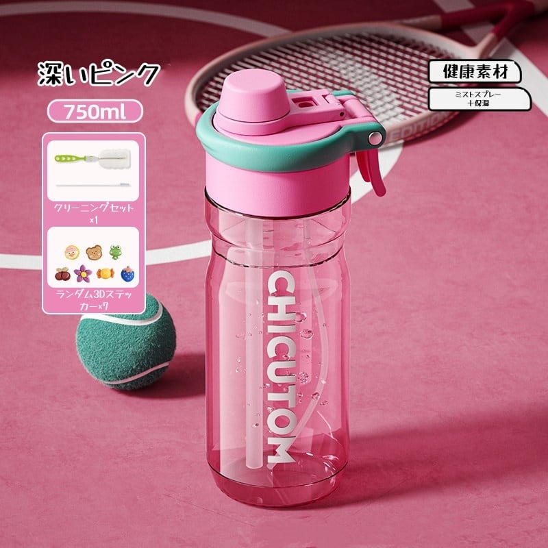 携帯用学生向けスポーツストロー付きミストスプレー健身用夏向け大容量高温耐性水筒
